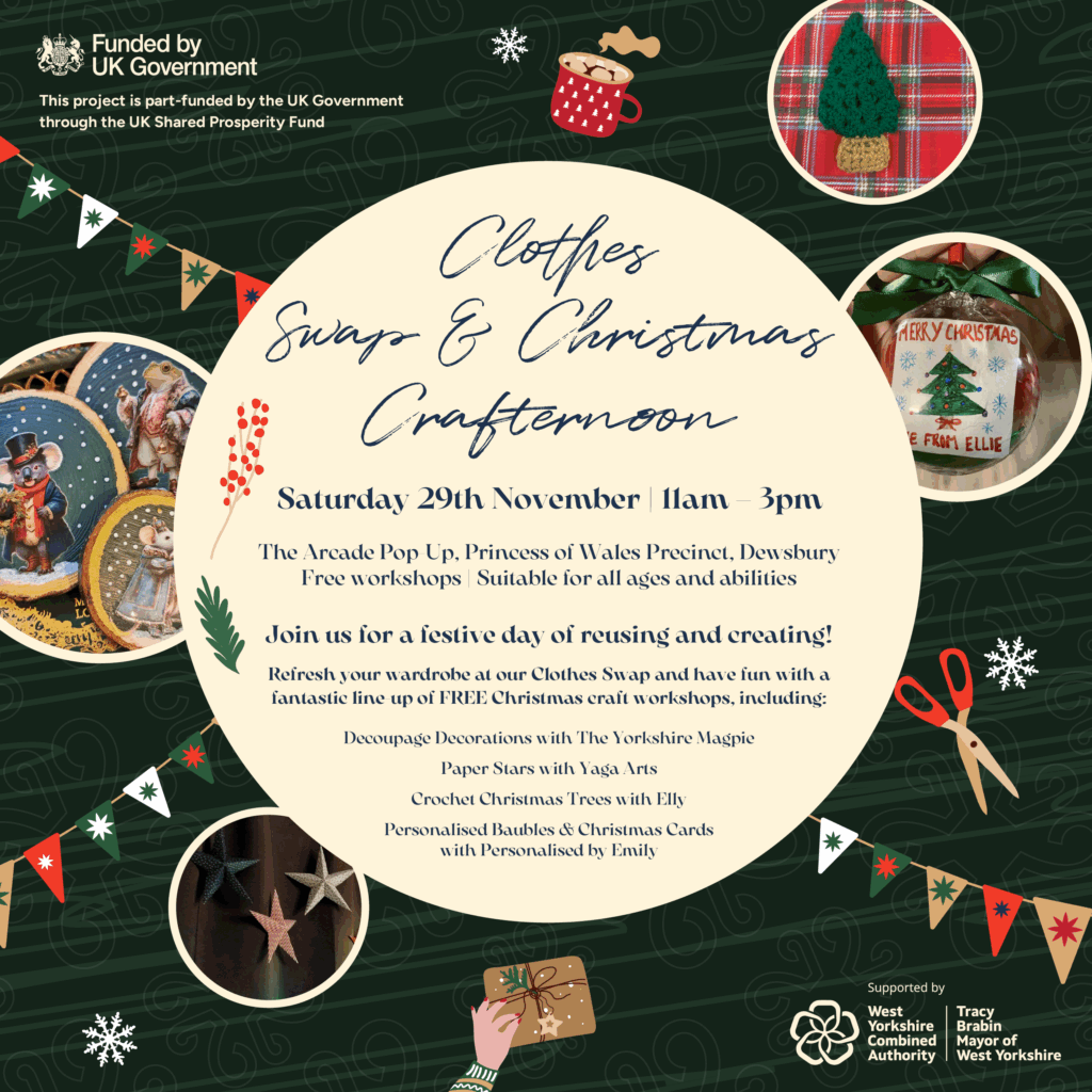 Refresh your wardrobe at our Clothes Swap and have fun with a fantastic line-up of FREE Christmas craft workshops, including: